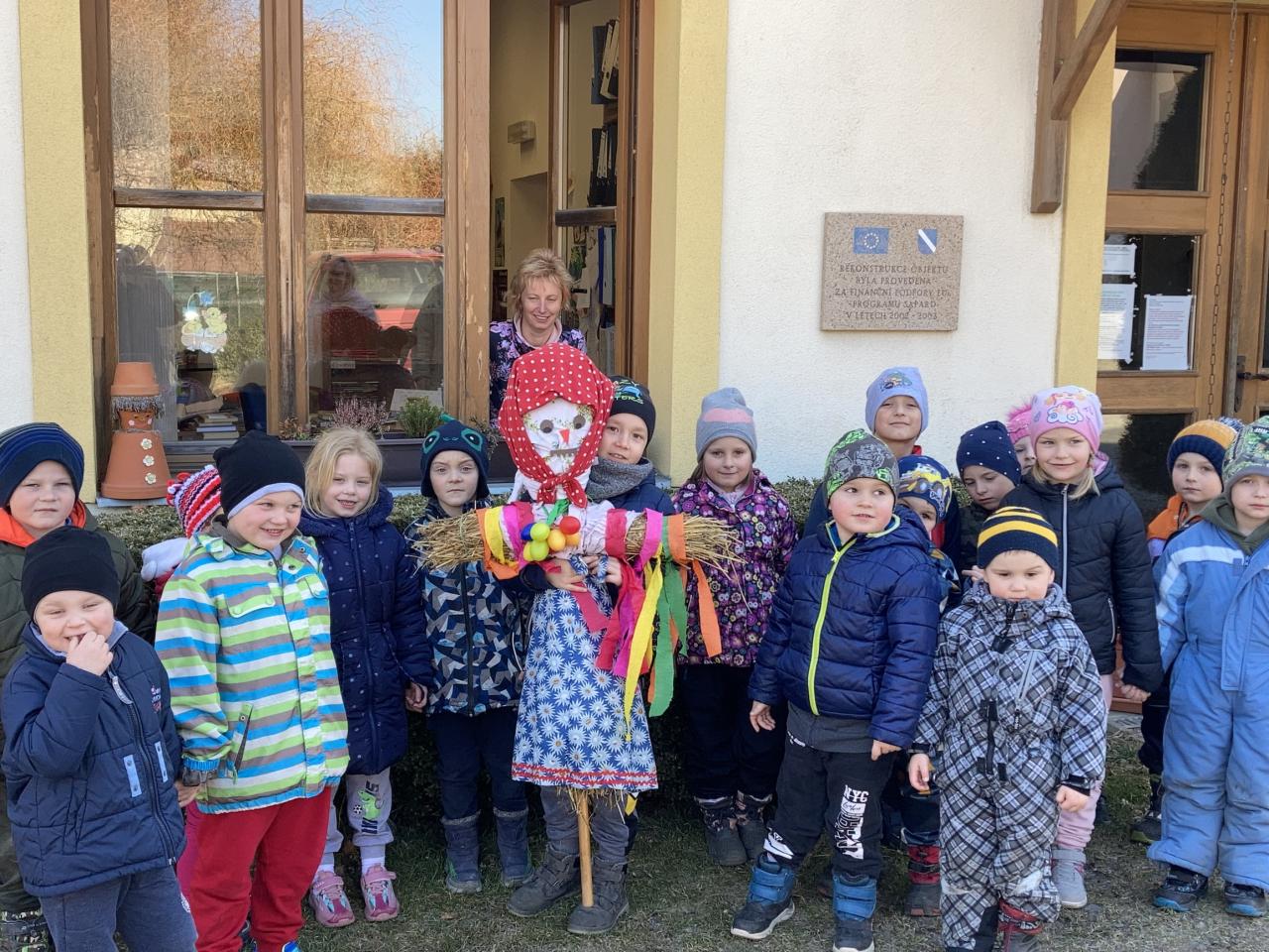 21.3.2022 jsme vítali jaro a vynášeli Morenu. Za doprovodu zpěvu a říkadel jsme cestou navštívili místní knihovnu, kadeřnici, obecní úřad a obchod. U potoka jsme se s Morenou rozloučili a uvítali jaro.